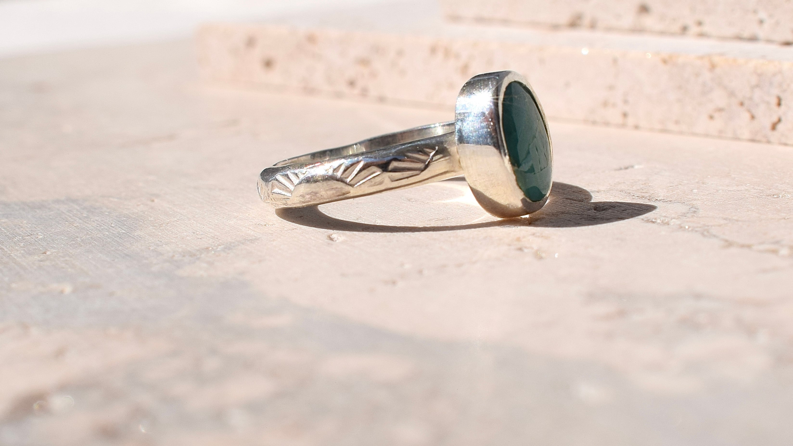 淡い緑が特徴の天然石を使ったリング✨