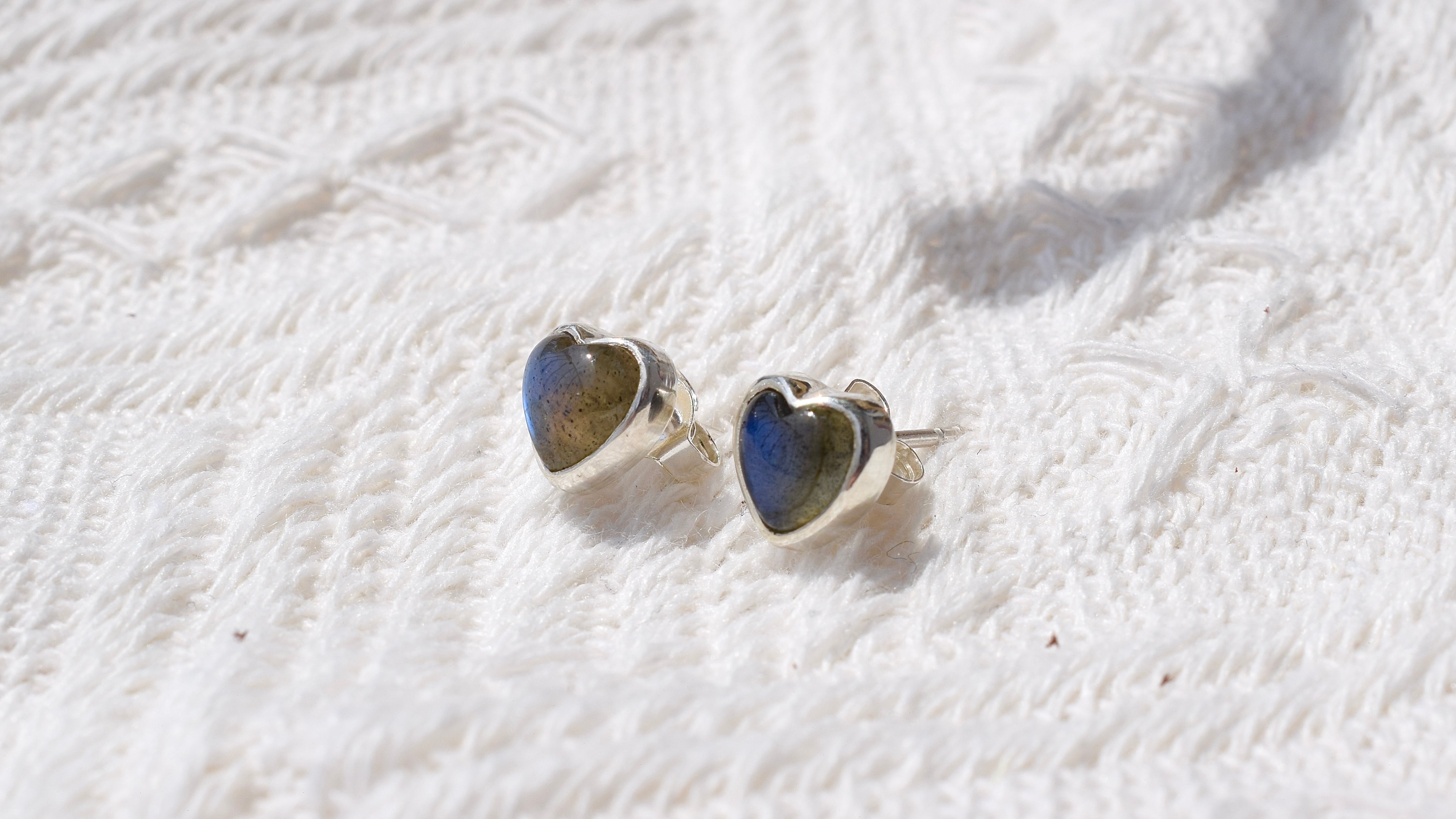 神秘的な輝きを放つラブラドライトを使用した、上品でスタイリッシュなデザインのピアスです。