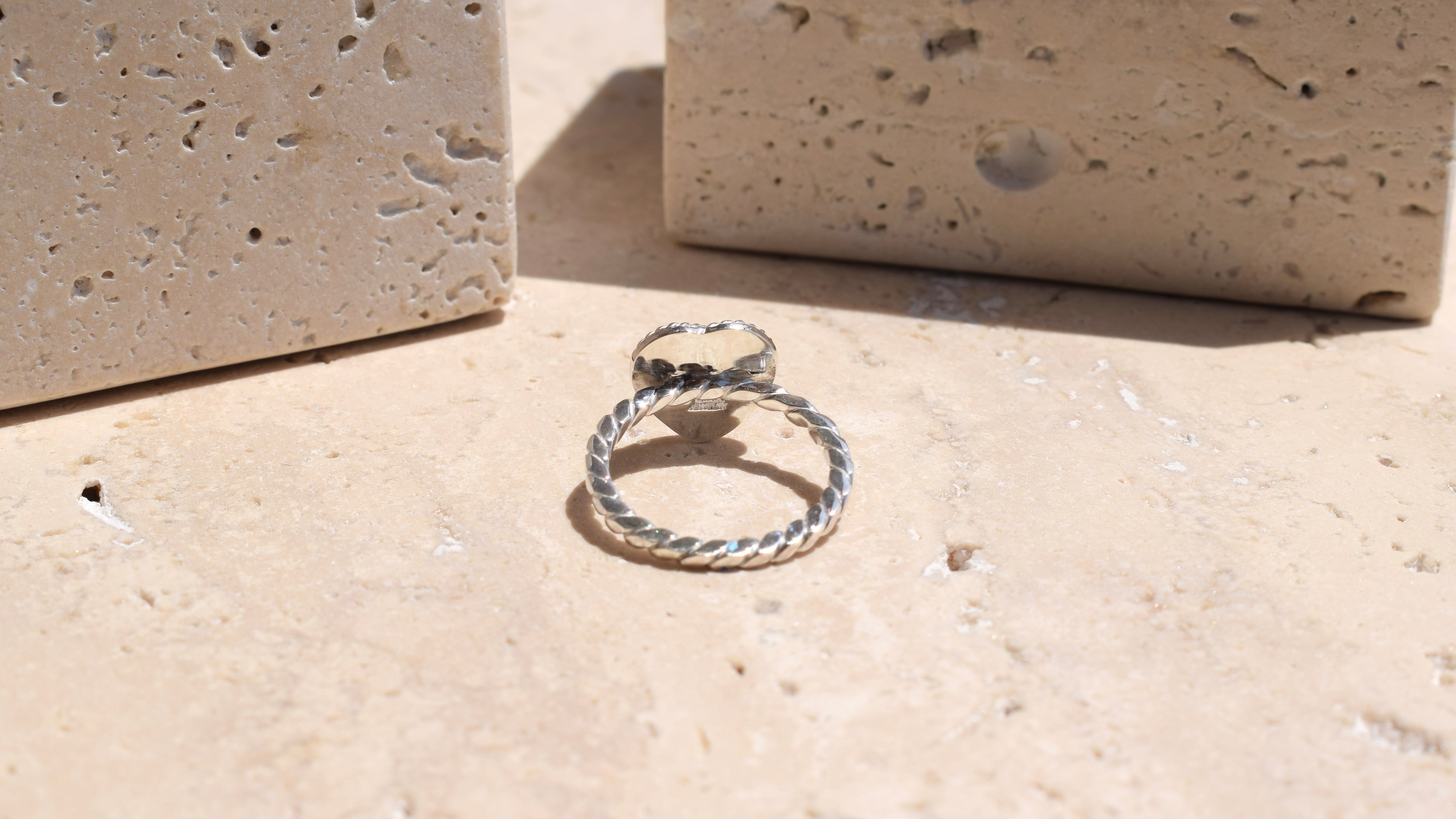 深い色合いを持つスリーピングビューティーのターコイズを使用した、上品でスタイリッシュなデザインのリングです。特別な日だけでなく、日常使いにもぴったり。心を込めて制作した一点ものですので、大切な人へのプレゼントにも、自分へのご褒美にもぜひご利用ください♡