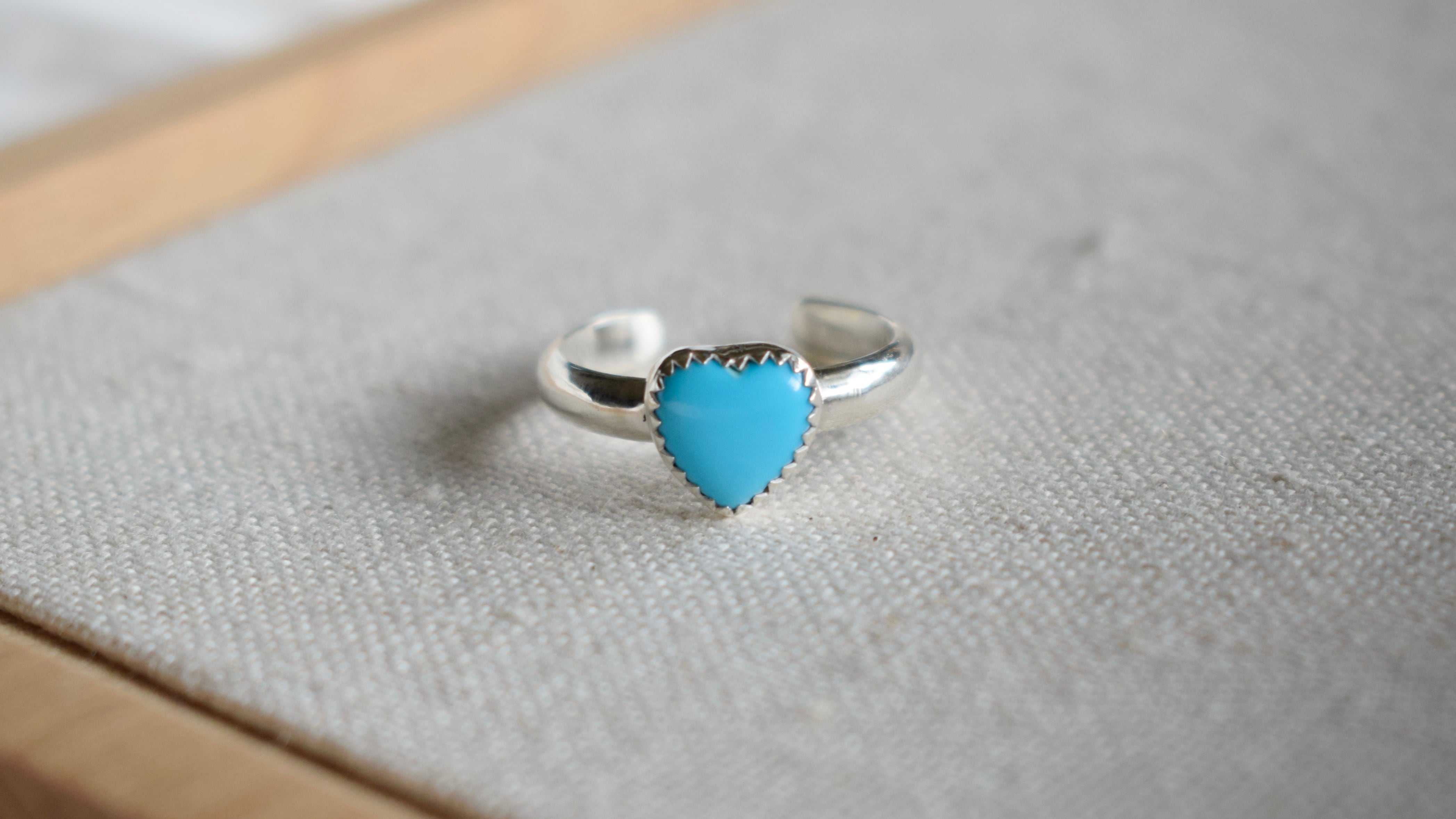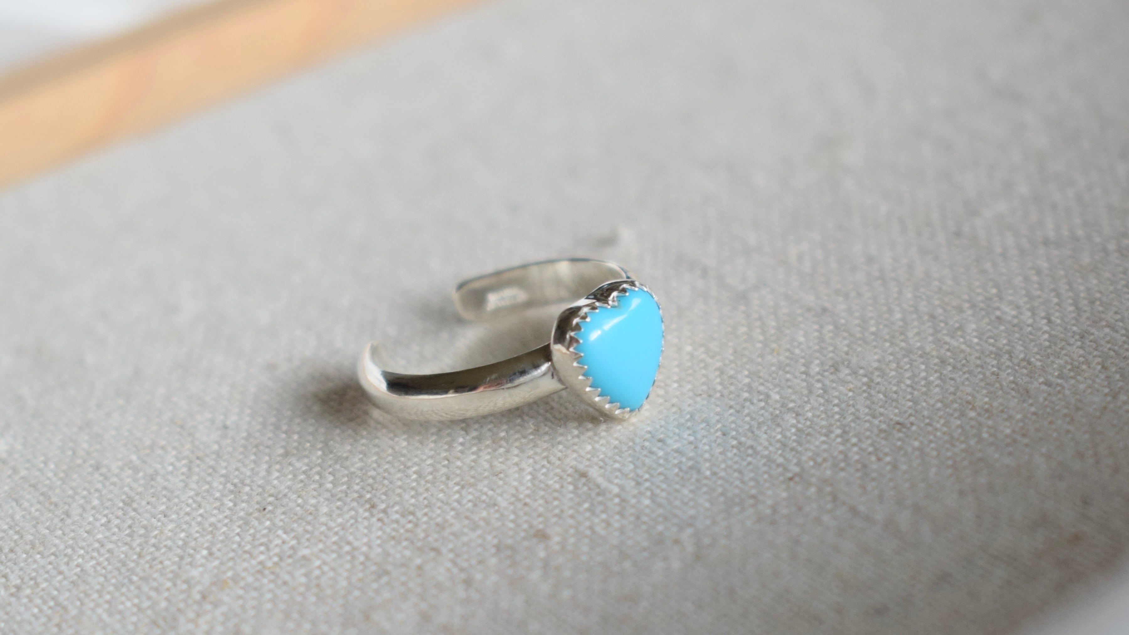 深い色合いを持つスリーピングビューティーのハートリング♡MariaJewelry新作のサイズ調整可能なカフリングです✨