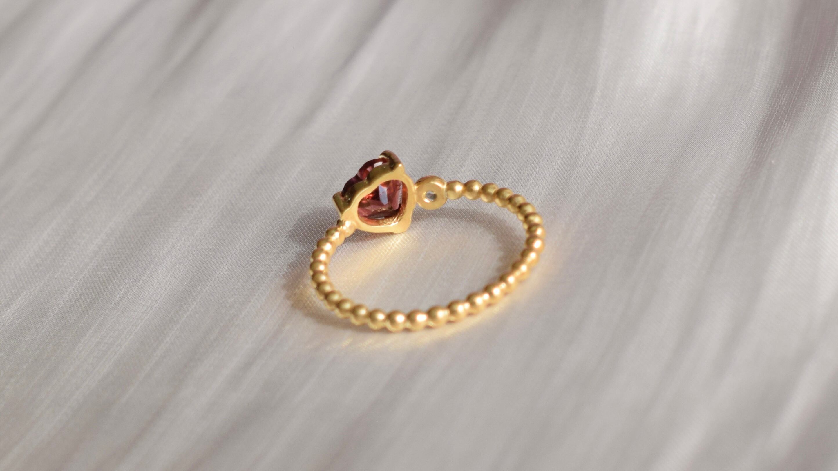 深い赤色が魅力のガーネットを使用した、手元を美しく彩る一点物のリングです