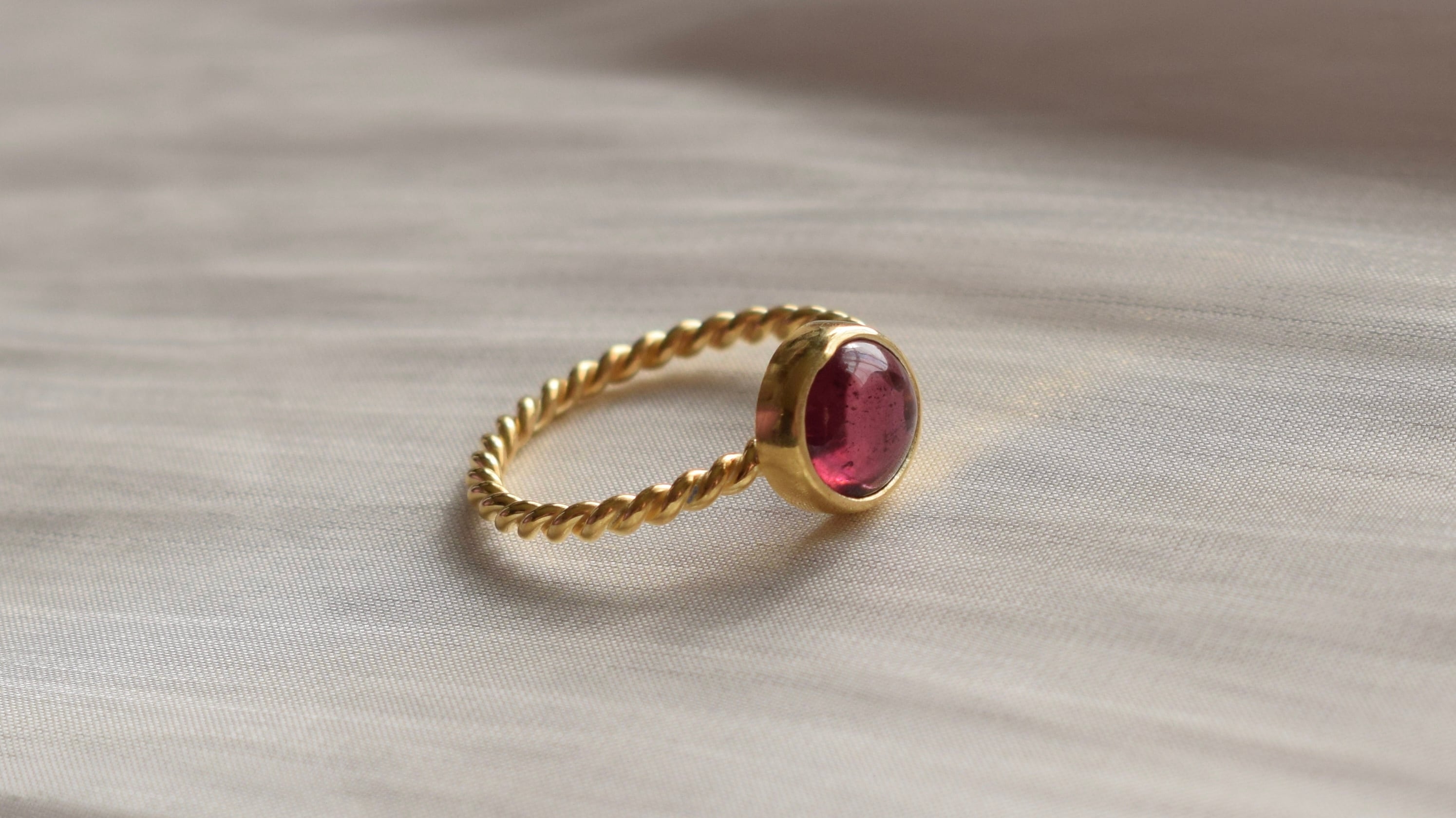 深い赤色が魅力のガーネットを使用した、手元を美しく彩る一点物のリングです