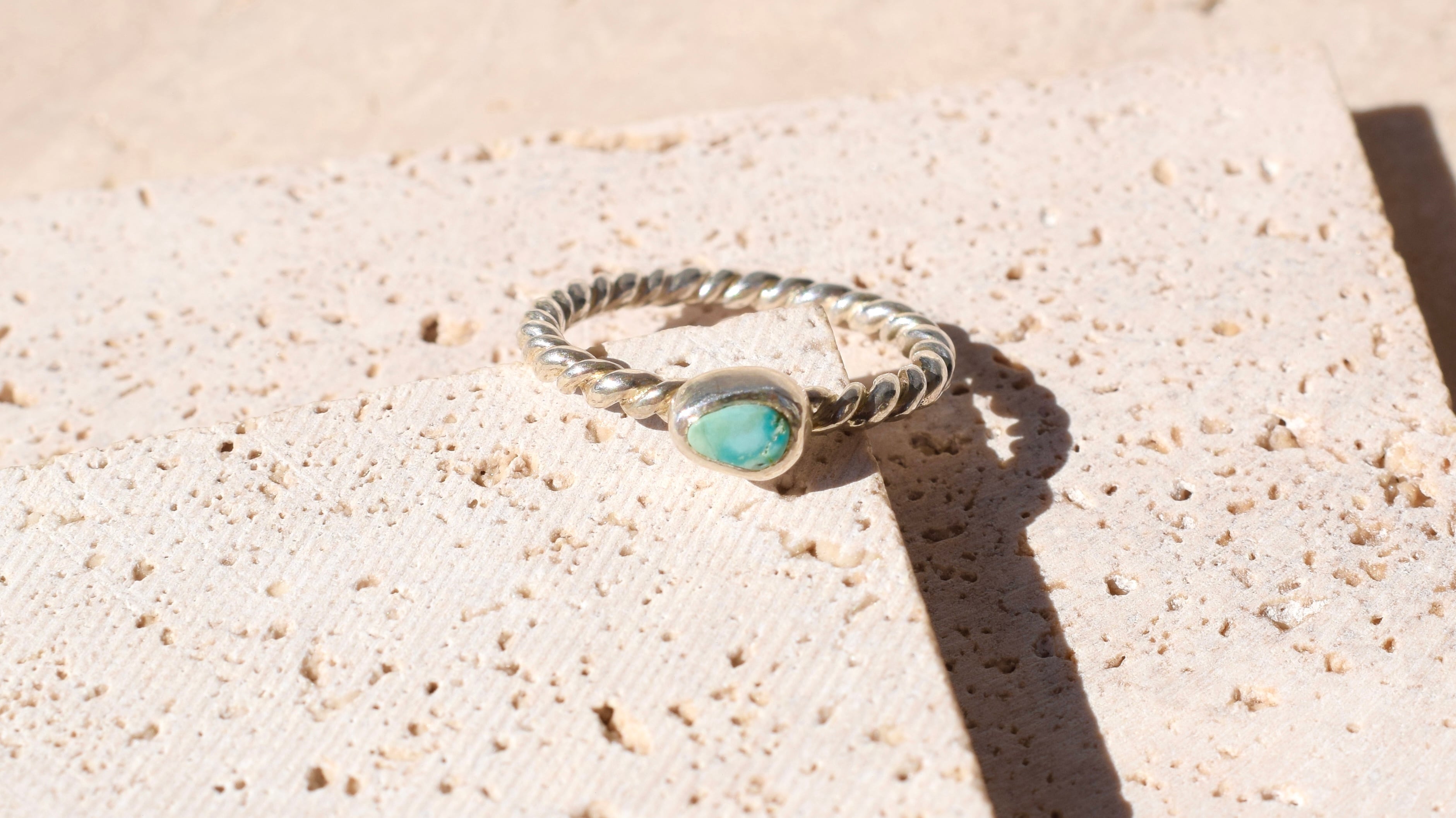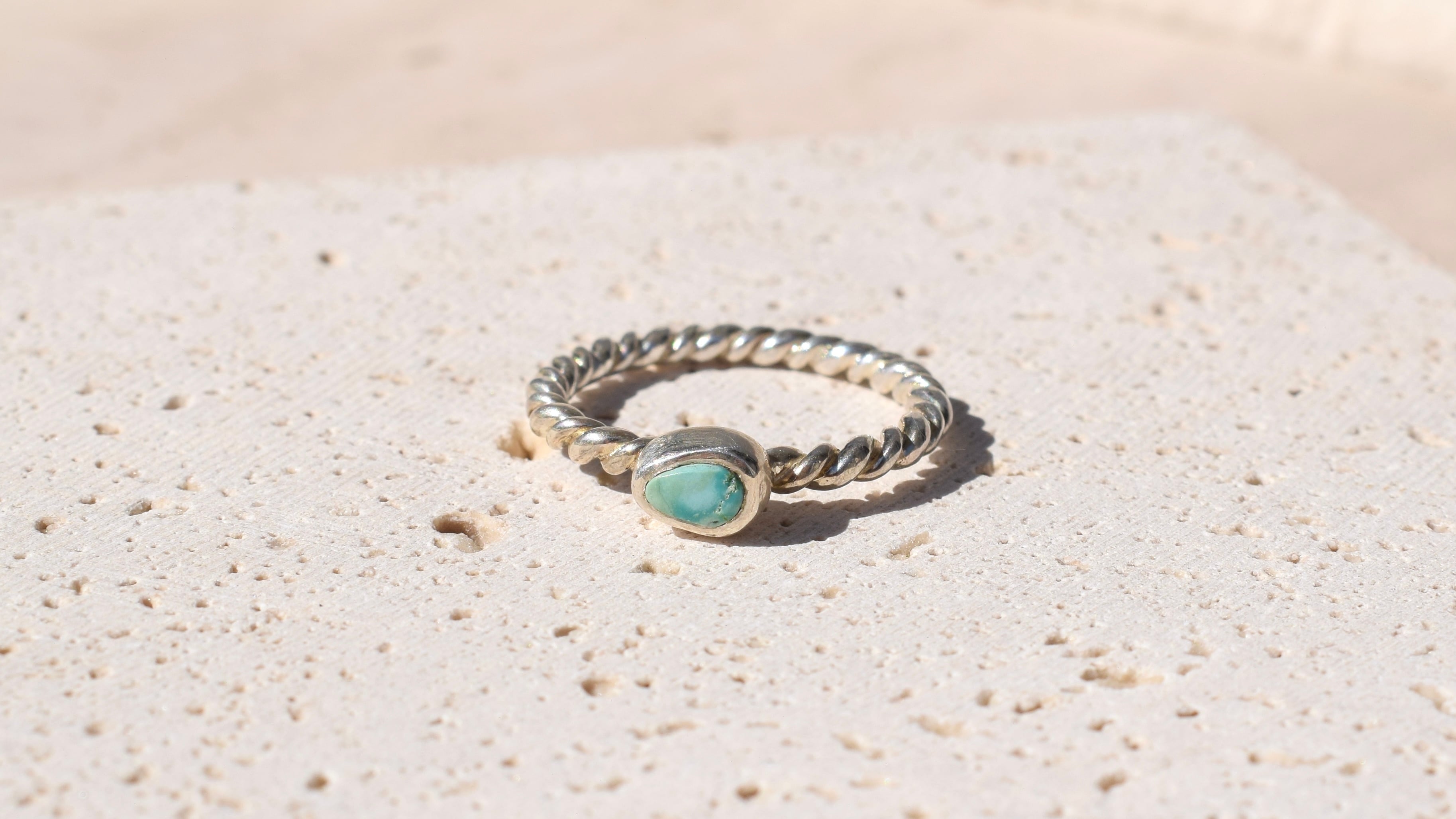 小粒の可愛いターコイズをデザイン性のあるネジネジリングと合わせました♡