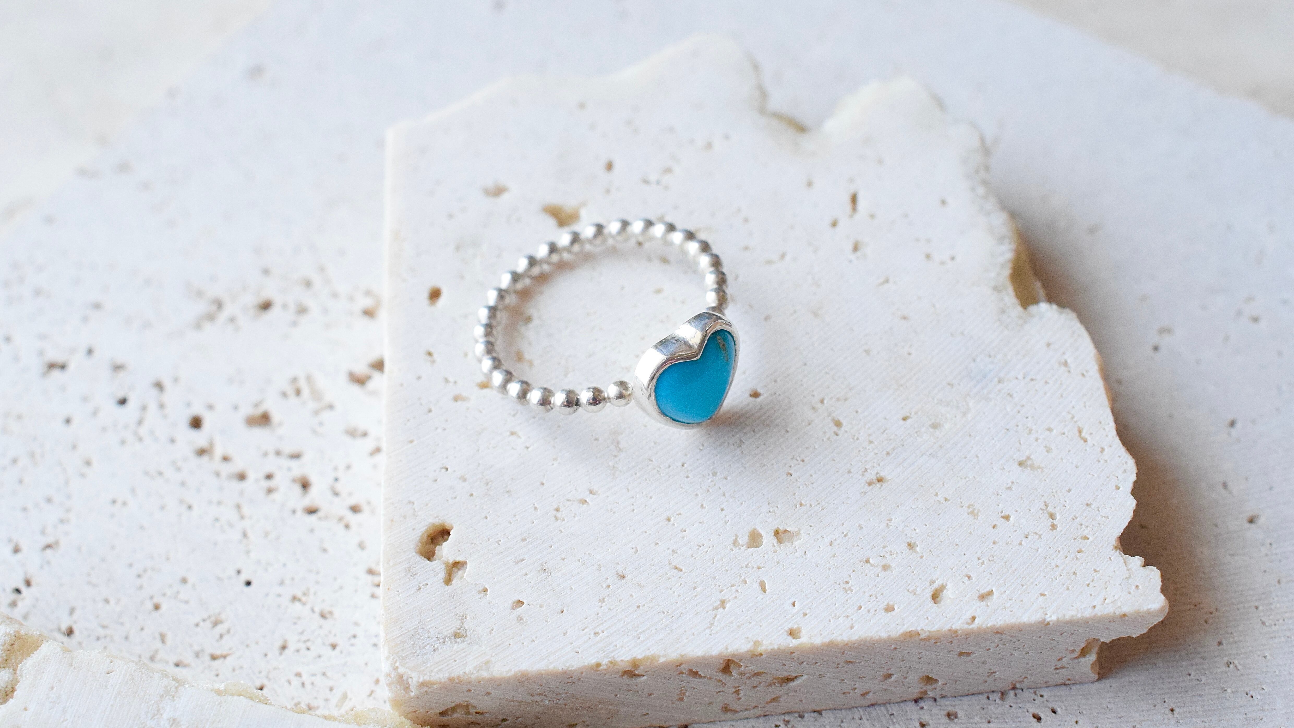 Sleeping beauty turquoise heart ring《silver925》つぶつぶring【受注製作】