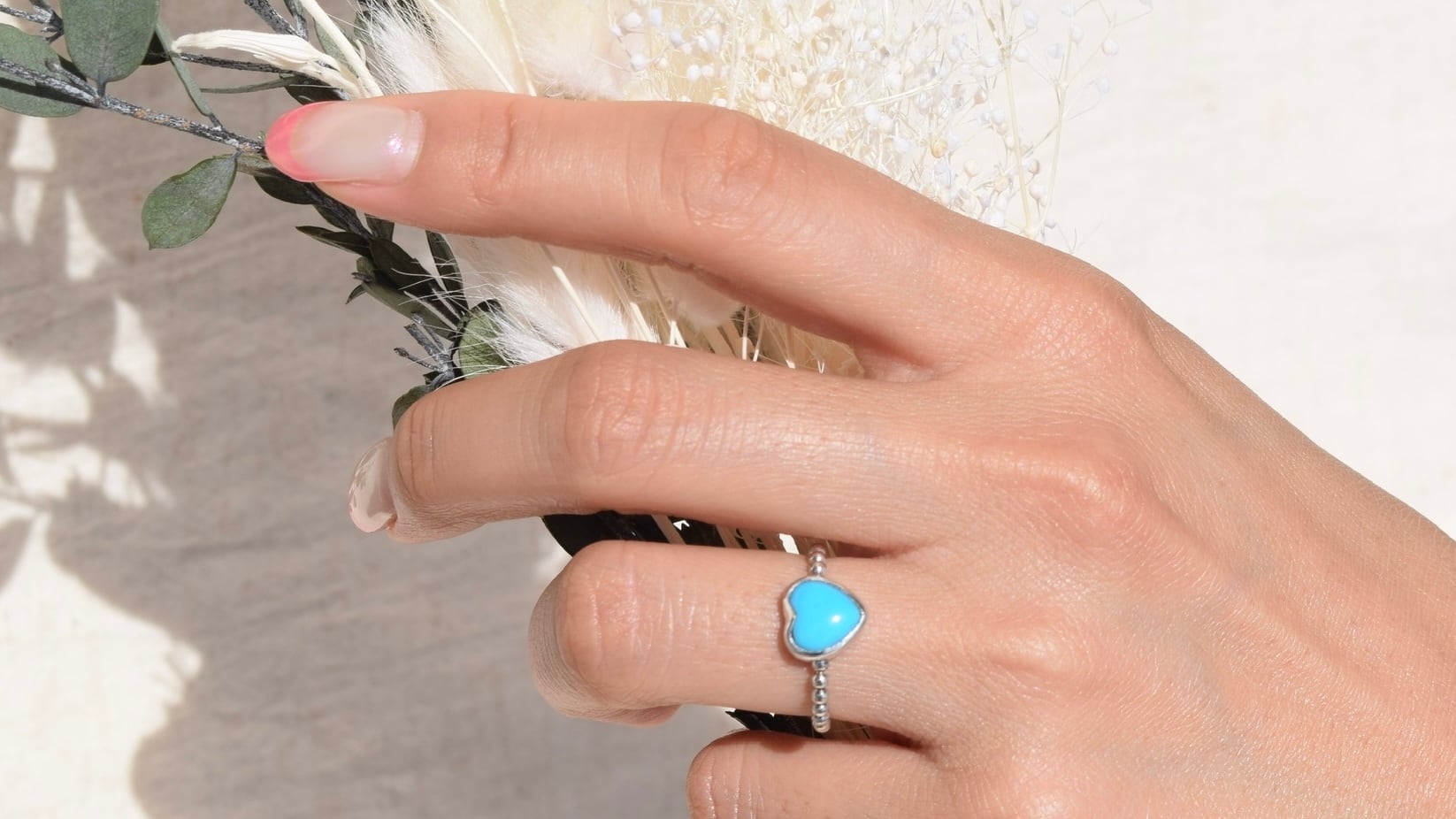 ハート型の天然ターコイズが施されたデザインは、どんなスタイルにも華やかさをプラスしてくれます。自分へのご褒美や大切な人への贈り物としても最適です♡